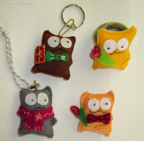 21. Елена Вержаева, блог "Личное солнышко" сшила коричневого, дымчатого и парочку рыжих котиков. Все они стали брелоками. Они очень милые!